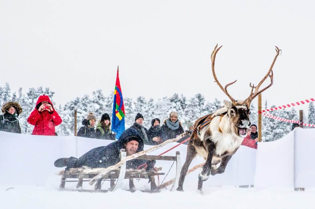 A rénszarvasverseny igen régi szokás a számik körében, bár a rénszarvasok a természetüknél fogva nem igazán alkalmasak az efféle vetélkedésre: hozzászoktak, hogy gyakran kell menekülniük, ezrét kiszámíthatatlanul mozognak, amivel megzavarják a üldözőiket, ráadásul csak rövid távon tudnak gyorsan futni. Miután nehéz ráérezni, kitalálni az állatok szándékait, a rénszarvasverseny valóságos szerencsejátéknak mondható, akkor különösen, amikor nem szánon fekve, hanem sítalpakon állva húzatja magát az ember. Rögzítséhez szükséges heveder ide vagy oda, az ember borulhat a szánnal vagy síléccel. A jokkmokkiak szerint, aki szorosan felfekszik a szánra, az nem fog leesni. A győztes rénszarvas agancsot kap emlékbe a vásáron szervezett rénszarvasszánversenyen.