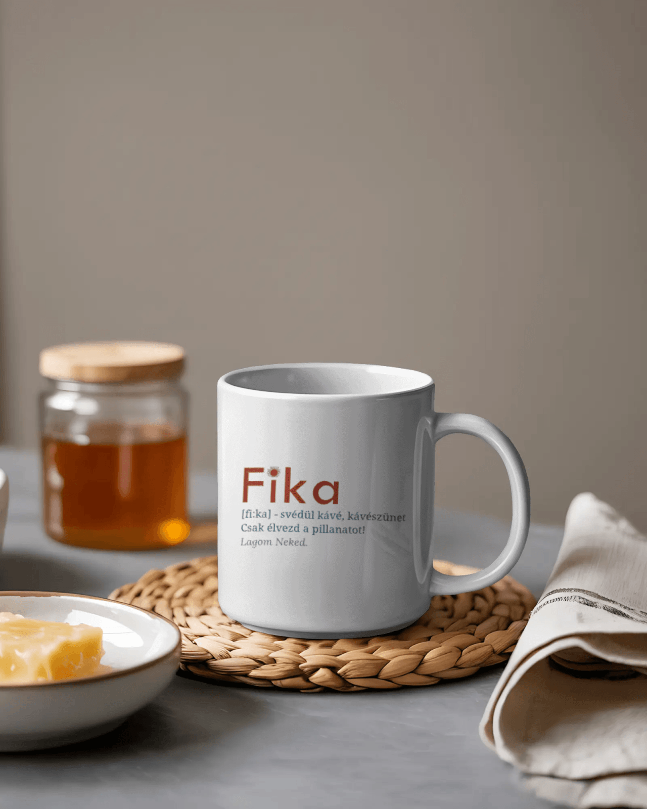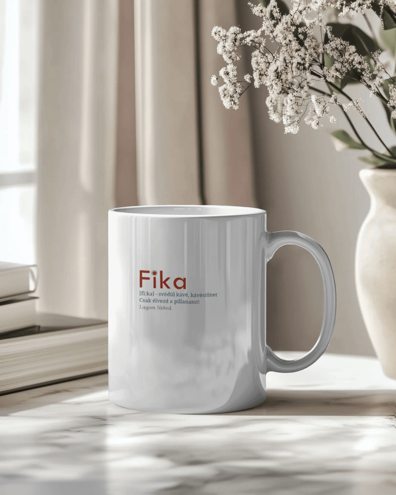 Képzeld el, ahogy a svédek nyugodt, meghitt kávészünetét, a „fika” pillanatát átéled – otthon, a munkahelyen vagy akár egy baráti találkozón. A Fika bögre nemcsak egy kerámia darab, hanem egy életérzés – a fika szó definíciójával díszítve garantáltan feldobja a napodat.